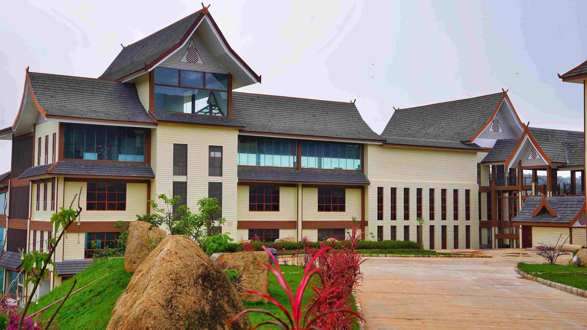 賀開莊園具有濃郁的民族氣息,主題建筑由金剛葫蘆門、聞香樓、妙香坊、藏香閣、夢香軒等組成。 金剛葫蘆門創(chuàng)意來源于拉祜族吉祥物葫蘆及拉祜族民居歇山屋頂,歡迎天涯海角的茶友吉祥如意。拉祜族,也正是賀開古茶山的原住民,世代以茶為生。