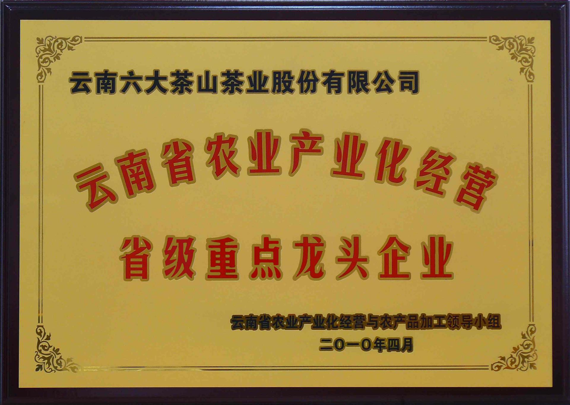 云南省農(nóng)業(yè)產(chǎn)業(yè)化經(jīng)營省級(jí)重點(diǎn)龍頭企業(yè)